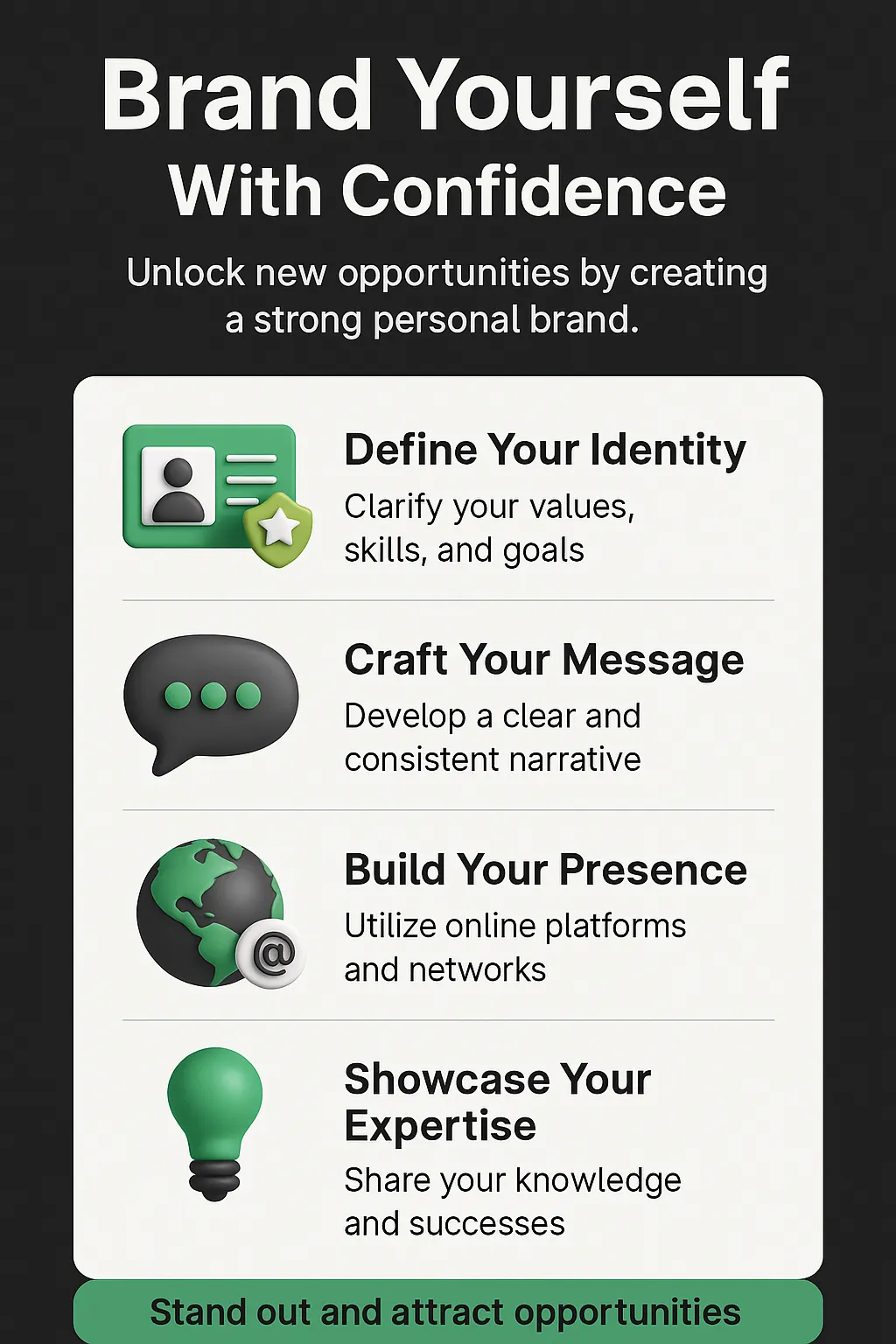 Branding yourself with confidence doesn’t mean creating a false image; it means aligning your story with your authentic skills and experiences. A confident personal brand shows others what you stand for, makes your expertise recognizable, and sets you apart in competitive spaces.